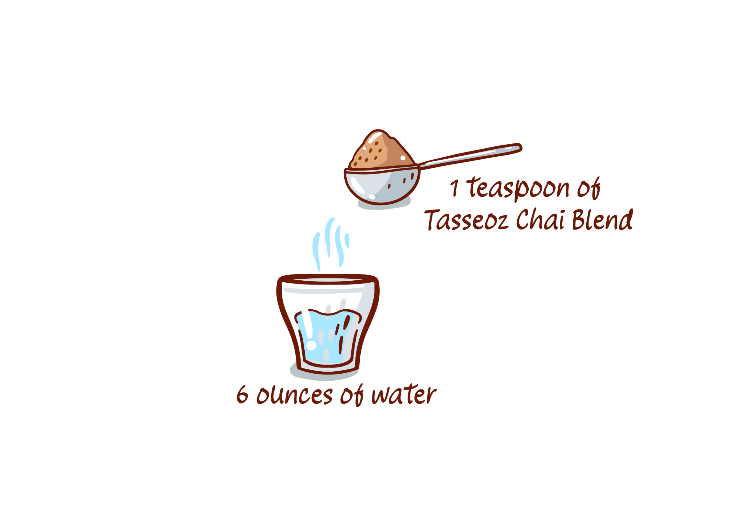 For a single serving, measure 1 teaspoon of Tasseoz Chai Blend for every 6 ounces of water.